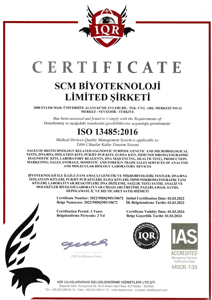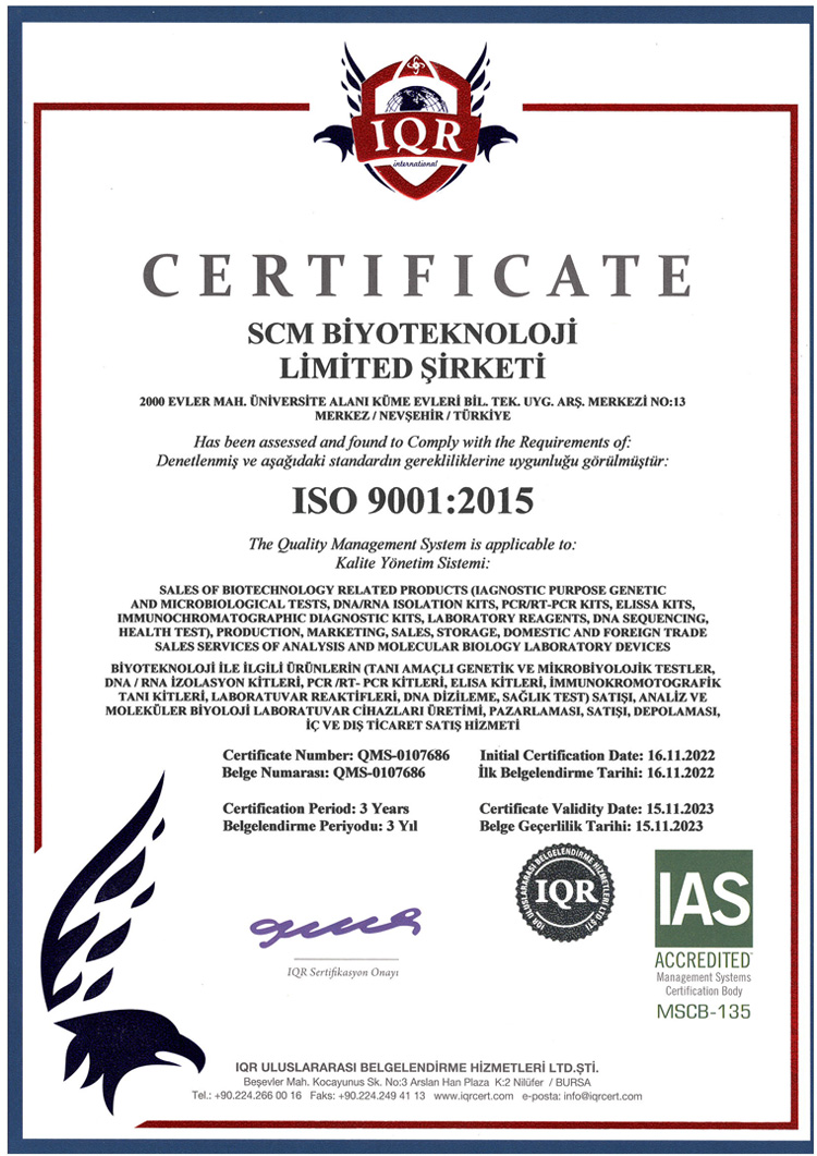 SCM Biotech Co. CERTIFICATES
